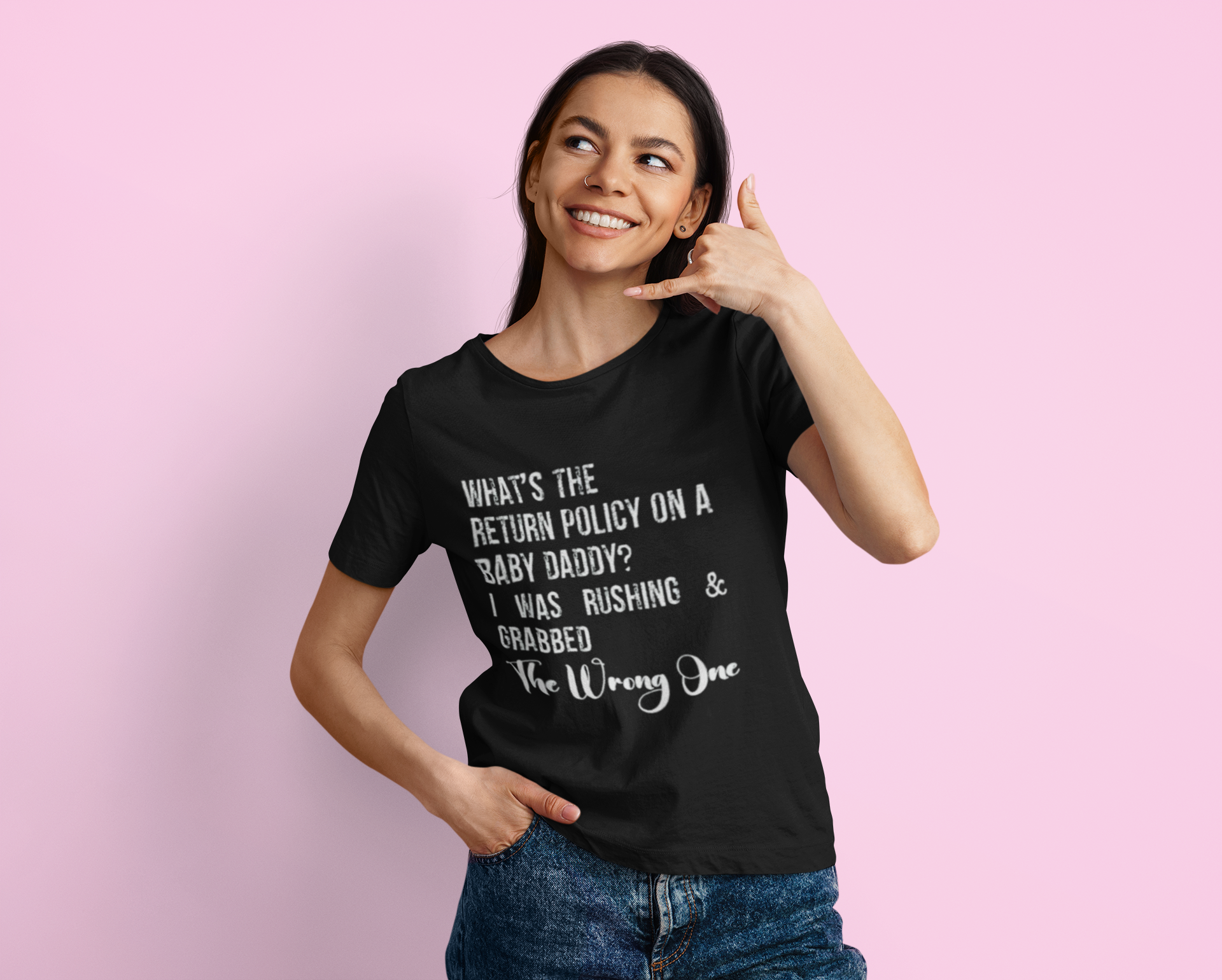 This funny humor tee with a 'baby daddy' return policy design is perfect for those who enjoy witty and lighthearted fashion statements. It adds a playful vibe to any casual outfit and makes a great gift for Father's Day or baby showers.